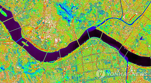 | △ 아리랑 3A호가 촬영한 서울 주간 적외선 영상 (서울=연합뉴스) 미래창조과학부는 3월 26일 러시아 야스니 발사장에서 성공적으로 발사된 다목적실용위성 '아리랑' 3A호가 촬영한 지구 관측 영상을 14일 공개했다. 현재 한국항공우주연구원은 다목적실용위성 3A호에 대한 초기 운영 및 검보정을 진행 중이다. 이번 영상은 성능 점검 목적으로 촬영된 시험영상이다. 사진은 1일 3A호가 촬영한 서울 주간 적외선(IR) 영상. 5.5m 해상도 촬영. 온도가 높은 지역은 빨간색으로, 온도가 낮은 지역은 파란색과 어두운색으로 표시되어 해당 지역의 온도차 정보를 확인할 수 있다. (한국항공우주연구원 제공) |