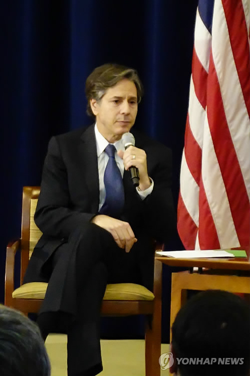 (워싱턴=연합뉴스) 김세진 특파원 = 토니 블링큰 미국 국무부 부장관이 한국과 일본 간 관계에 대해 "상당히 긍정적 궤도에 오른 것으로 보인다"고 평가했다.