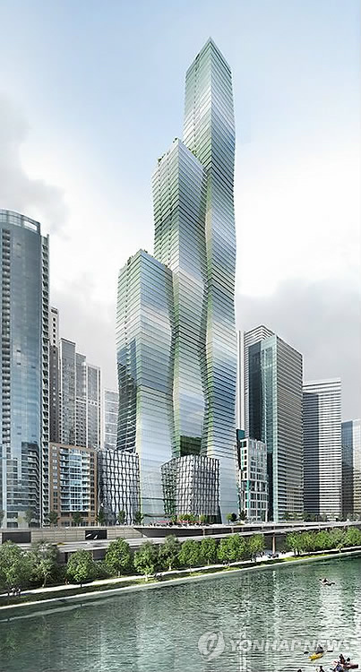 설계를 맡은 시카고 유명 여성 건축가 진 갱은 전날 초록색과 푸른색 유리 블럭을 쌓아놓은 듯한 건물 예상도를 공개했다.