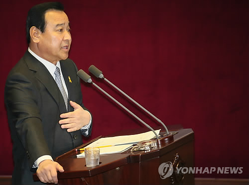 | △ 국회 답변하는 이완구 (서울=연합뉴스) 진성철 기자 = 이완구 국무총리가 15일 국회 본회의에서 진행된 경제분야 대정부질문에서 성완종 전 경남기업회장으로부터의 금품수수 의혹에 대한 질의에 답변하고 있다. |