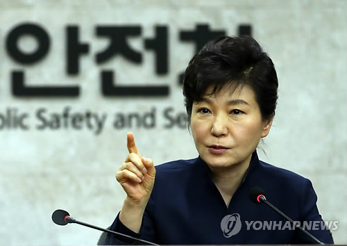 | △ 안전 강조하는 박 대통령 (서울=연합뉴스) 도광환 기자 = 박근혜 대통령이 15일 오후 정부서울청사 국민안전처 회의실에서 열린 세월호 1주기 현안 점검회의에서 발언을 하고 있다. |