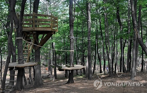 숲을 미끄러져 내려오는 짚라인, 둥근 판 위에서 빙글빙글 도는 스윙디스크, 나무 위로 오르는 트리탑 덱 등 6가지 시설이 개장 전에 설치된 것으로 확인됐다.