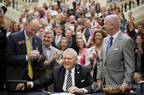 | △ 네이선 딜 미국 조지아 주지사가 16일(현지시간) 의료용 마리화나의 사용을 허가하는 법안에 서명했다. |