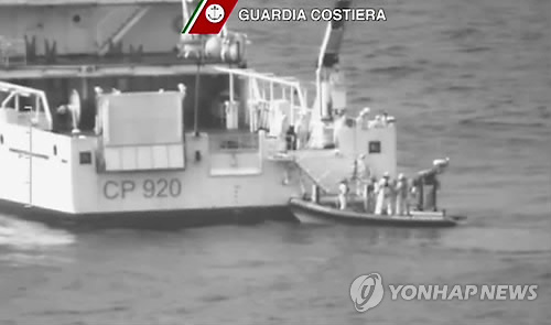 이탈리아 해상구조대 대변인은 "구조와 시신 수색 작업을 동시에 펼치고 있지만 지금 상황에선 시신만을 찾고 있다"고 말했다. 해군 경비정과 상선 등 20척의 배와 헬기 3대가 이번 작업에 참여 중이라고 그는 덧붙였다.