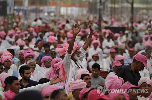 (뉴델리=연합뉴스) 나확진 특파원 = 인도에서 대규모 산업단지 조성을 쉽게 하고자 나렌드라 모디 정부가 추진하는 토지수용법 개정안에 반대하는 대규모 농민 집회가 19일(현지시간) 열렸다.