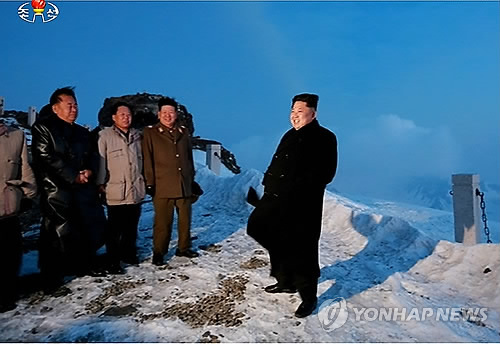 김정은 국방위원회 제1위원장은 지난 18일 새벽 아버지 김정일의 원수 칭호 수여일(4.20)을 앞두고 황병서 군 총정치국장, 최룡해·김양건 노동당 비서, 리재일·리병철 당 제1부부장과 백두산에 올랐다.