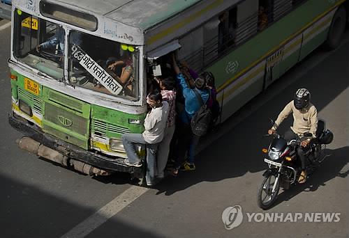 | △ 인도 뉴델리 시내를 달리는 만원버스(AP=연합뉴스DB) |