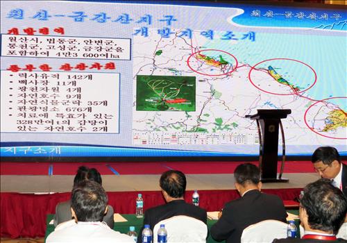 | △ 지난해 9월 20일 중국 랴오닝성 다롄에서 열린 북한 투자설명회에서 북한 대외경제성 산하 원산지구개발총회사가 공개한 원산-금강산지구 소개 자료 |