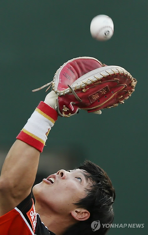 (서울=연합뉴스) 하남직 기자 = 밀어내기 볼넷이 나온 상황에서 포수가 1루쪽으로 공을 던졌고, 추가점을 헌납했다.
