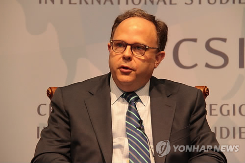 | △ 미국 6자회담 특사 "북한 이란핵협상 교훈 못 얻은듯" (워싱턴=연합뉴스) 심인성 특파원 = 시드니 사일러 미국 국무부 6자회담 특사가 21일(현지시각) 미 워싱턴DC에 있는 싱크탱크 전략국제문제연구소(CSIS) 주최로 열린 '한반도 통일에 대한 중국의 정책' 토론회에서 북핵 문제에 대해 발언하고 있다. 사일러 특사는 "북한은 최근 2년 동안 비핵화에 대한 어떤 의지도 보여주지 않았다"면서 "북한이 이란 핵협상으로부터 어떤 교훈도 얻지 못한 것 같다"고 지적했다. |