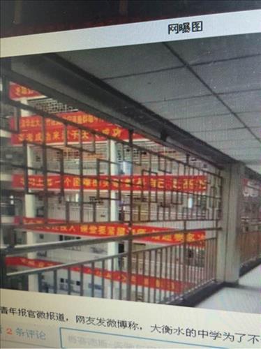 헝수이 제2고등학교에 설치된 철창(웨이보<微博, 중국판 트위터> 캡처)