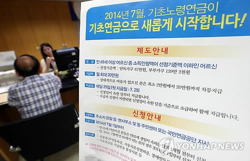(서울=연합뉴스) 서한기 기자 = 만 65세 이상 소득 하위 70%의 노인에게 24일부터 기초연금으로 매달 최고 월 20만2천600원이 지급된다.