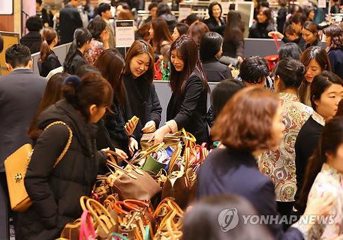 | △ 백화점 할인행사장에 몰린 고객(연합뉴스 자료사진) |