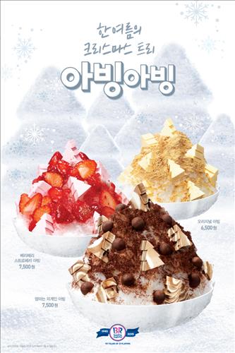 (서울=연합뉴스) 이유미 기자 = 배스킨라빈스는 곱게 간 얼음 위에 크리스마스 트리 모양의 아이스크림 토핑을 얹은 빙수 3종을 출시했다고 24일 밝혔다.