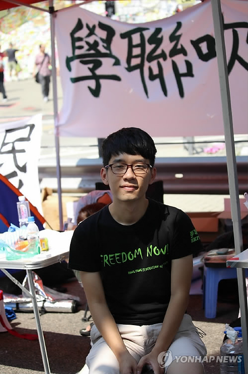 | △ (홍콩=연합뉴스) 최현석 특파원 = 13일(현지시간) 홍콩 정부청사가 있는 애드미럴티(金鐘)의 도로에서 바리케이드를 치고 경찰과 대치하고 있던 네이선 로(羅冠聰) 홍콩링난대 총학생회장(21)은 연합뉴스와의 인터뷰에서 "경찰이 진압에 나서면 시민에게 대피하라고 할 것"이라며 "그리고 곧 다시 모이라고 할 것"이라고 말했다. 시위를 주도하는 대학학생회 연합체 홍콩전상학생연회(香港專上學生聯會·학련)의 상무위원인 로 회장은 "정부가 대화에 나서지 않으면 더 강력한 투쟁 방안을 고민하겠다"고 경고했다. 2014.10.13 harrison@yna.co.kr |