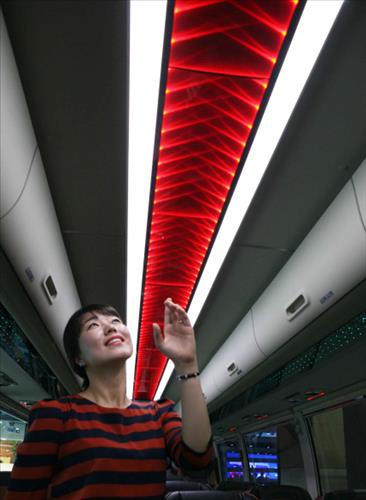 버스에 사용된 LED 입체조명 모듈은 기존 조명모듈 두께의 10% 수준인 3.5㎜ 초슬림형으로 입체감을 구현, 공간 활용이 자유롭다는 게 LG이노텍의 설명이다.