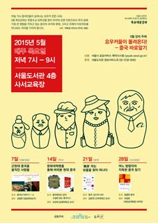 5월에는 '중국인 이야기(7일, 김명호), '중국현대사 강의·소설로 읽는 중국사2'(14일, 조관희), '중국, 당시의 나라'(21일, 김준연), '달콤한 중국'(28일, 조창완)의 저자들이 직접 강의에 나선다.