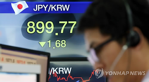 원·엔 환율은 지난 23일 서울 외환시장 개장 전 비공식 재정환율(전일 원·달러 환율 종가 기준)이 900원선 아래로 떨어진 바 있다.