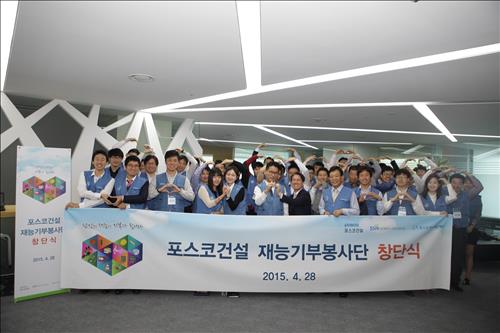 (서울=연합뉴스) 서미숙 기자 = 포스코건설은 인천 송도사옥에서 '재능기부 봉사단' 창단식을 했다고 28일 밝혔다.