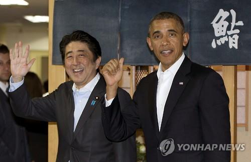 (워싱턴 AP=연합뉴스) 버락 오바마 미국 대통령과 아베 신조 일본 총리의 28일(현지시간) 정상회담의 숨겨진 핵심의제는 중국이다.