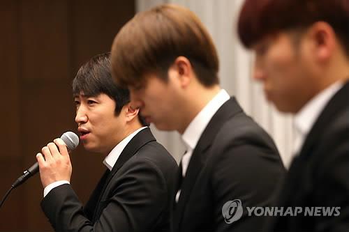 이들은 검은 양복 차림으로 등장해 여러 차례 고개를 숙였으며 장동민은 발언 중간 중간 눈물을 보이기도 했다.