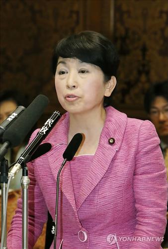 | △ (도쿄 교도=연합뉴스) 2015년 4월 1일 일본 참의원 예산위원회에서 후쿠시마 미즈호(福島瑞穗) 사민당 의원이 질의하고 있다. |