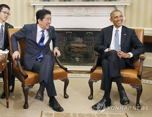 버락 오바마 대통령과 아베 신조 일본 총리는 이날 오전 백악관에서 정상회담을 하고 이런 내용을 골자로 하는 공동성명을 발표했다.