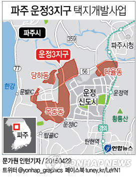 (파주=연합뉴스) 우영식 기자 = 경기도 파주 운정3지구 택지개발사업 때문에 한국토지주택공사(LH)의 근심이 깊어지고 있다.