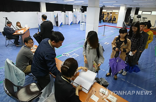 | △ 붐비는 투표소 (서울=연합뉴스) 김도훈 기자 = 4·29 재보선 투표가 시작된 29일 오전 서울 관악구 난향동주민센터에 마련된 투표소에서 주민들이 투표를 하고 있다. |