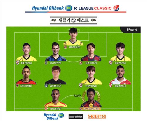 (서울=연합뉴스) 김태종 기자 = 프로축구 대전 시티즌의 아드리아노(28)가 프로축구 K리그 클래식 8라운드에서 최고 활약을 펼친 선수로 뽑혔다.