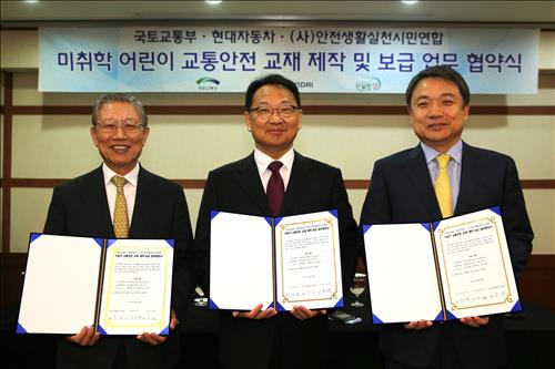 (서울=연합뉴스) 조재영 기자 = 현대자동차[005380]는 국토교통부, 안전생활실천시민연합과 함께 미취학 어린이 대상 교통안전 교재 제작과 보급에 관한 업무협약을 체결했다고 30일 밝혔다.