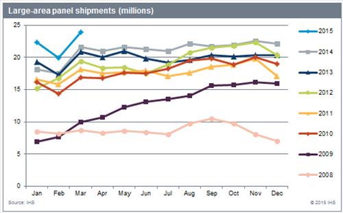 디스플레이서치는 "패널 제조사들이 4K 해상도와 넓은 색재현력(wide color gamut), 울트라 슬림 베젤(테두리) 등을 도입하면서 패널 출하량을 늘리고 있다"고 해석했다.