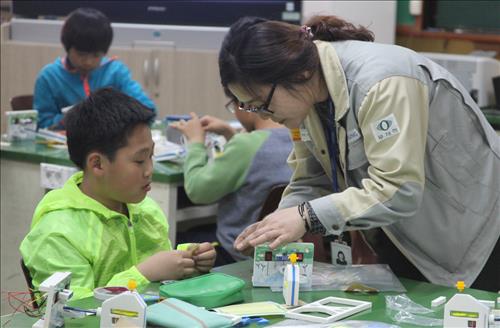 장애물을 만나면 스스로 멈추는 세이프 카, 효성이 자체 개발한 교재로 구성한 풍력공학이야기 등을 주제로 실습도 했다.