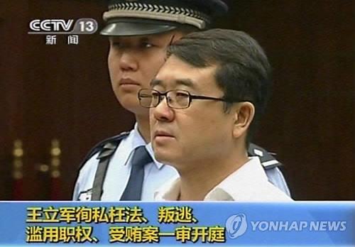 | △ (AP/CCTV=연합뉴스) 중국 '보시라이(薄熙來) 파문'의 시발점인 왕리쥔(王立軍) 전 충칭(重慶)시 공안국장이 지난 2012년 9월 재판을 받는 모습. |