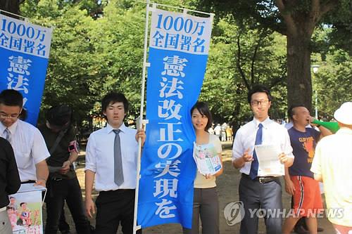 | △ 일본 야스쿠니 신사에서 열린 개헌지지 서명 운동 장면 |