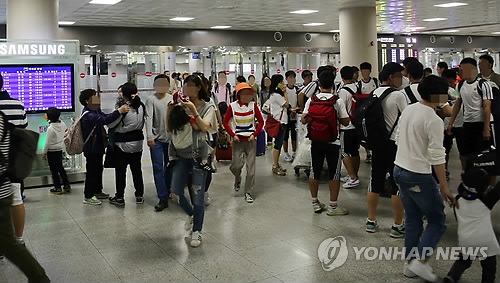 | △ (제주=연합뉴스) 고성식 기자 = 근로자의 날이자 어린이날(5일)로 이어지는 징검다리 연휴 첫날인 1일 제주에 5만명이 넘는 관광객이 찾은 가운데 제주공항이 관광객 등 이용객들로 북적이고 있다. 2015.05.01. koss@yna.co.kr |