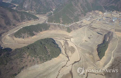 | △ 지난 3월 강원 인제군 남면 인근 소양호 상류가 가뭄으로 드넓은 바닥을 드러내고 있다. (연합뉴스 자료사진) |