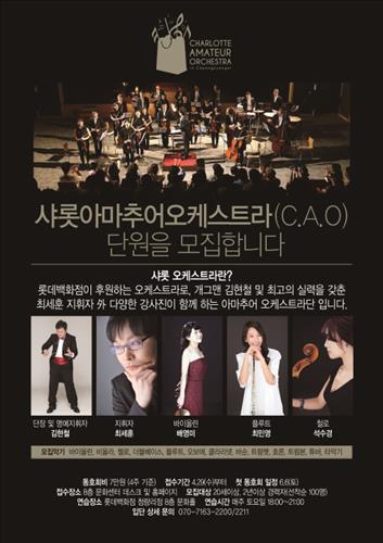 3일 롯데백화점에 따르면 강사진 10명과 일반단원 100명으로 구성된 '샤롯아마추어오케스트라(C.A.O)'가 운영된다. 전문 지휘자인 최세훈씨가 이 오케스트라의 지휘를 담당하며, 개그맨 김현철씨가 단장을 맡는다.