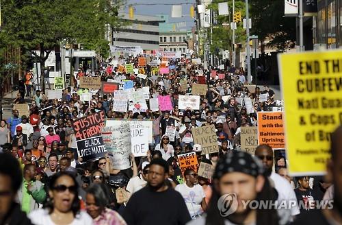 (서울=연합뉴스) 강건택 기자 = 흑인 청년 프레디 그레이의 사망 사건에 연루된 경찰관들에 대해 전격 기소 결정이 내려졌음에도 주말인 2일(현지시간) 미국 볼티모어에서는 사법 정의를 촉구하는 시위가 이어졌다.