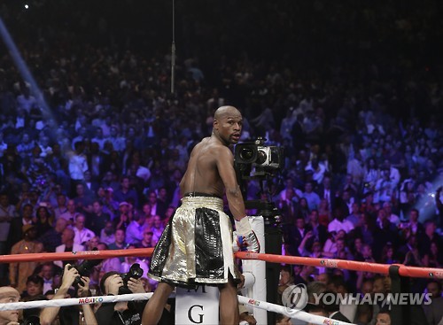 3일(한국시간) 미국 라스베이거스의 MGM 그랜드 가든 아레나에서 열린 두 선수의 세계복싱평의회(WBC)·세계복싱기구(WBO)·세계복싱협회(WBA) 웰터급 통합 타이틀전은 메이웨더의 판정승으로 끝났다.