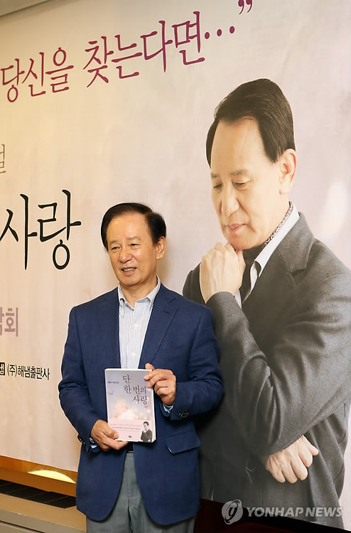 | △ 새 장편 '단 한 번의 사랑' 출간한 소설가 김홍신 (서울=연합뉴스) 소설가 김홍신이 대하소설 '대발해' 이후 7년 10개월 만에 사랑 이야기를 다룬 새 장편 '단 한 번의 사랑'을 펴냈다. 4일 서울 중구 프레스센터 외신기자클럽에서 열린 기자간담회에서 김홍신이 신간을 들고 포즈를 취하고 있다. 2015.5.4 << 해냄출판사 제공 >> photo@yna.co.kr |