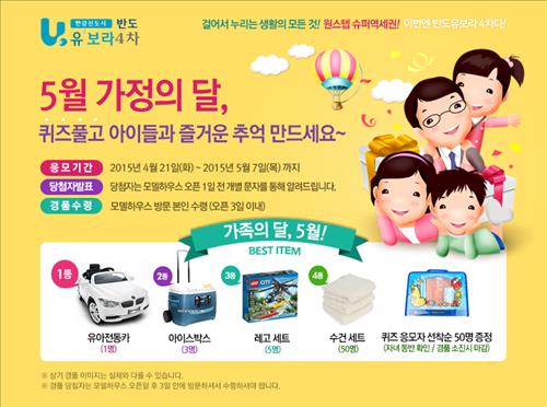 홈페이지(www.hangang-ubora4.co.kr)에서 간단한 퀴즈를 풀고 사전 등록 이벤트에 응모하는 고객에게는 추첨을 통해 유아전동카(1명), 아이스박스(3명), 레고 세트(5명), 수건 세트(50명)를 증정한다.