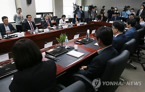| △ '가짜 백수오' 환불방안 소비자원-홈쇼핑 간담회 (서울=연합뉴스) 한종찬 기자 = 4일 오전 서울 강남구 도곡동 한국소비자원 서울지원에서 '가짜 백수오' 논란 관련 간담회가 열리고 있다. 이날 간담회에는 이남희 피해구제국장과 CJ오쇼핑, GS홈쇼핑, NS홈쇼핑, 롯데홈쇼핑, 현대홈쇼핑, 홈앤쇼핑 등 6개 업체 관계자가 참석했다. |