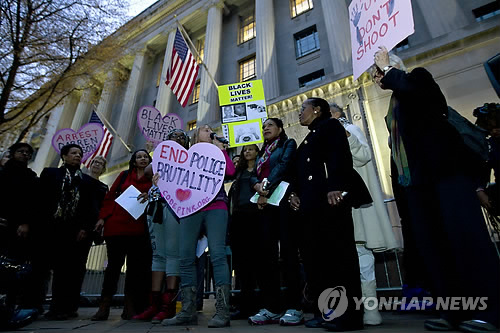 | △ 미국 국민들은 최근 들어 흑인과 백인의 인종 간 관계가 갈수록 나빠지고 있다고 생각하는 것으로 조사됐다. 사진은 워싱턴DC의 법무부 청사 앞에서 열린 흑인청년 마이클 브라운의 백인경찰 총격 사망에 항의하는 집회. (AP=연합뉴스) |