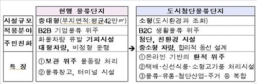 국토부는 도시에 산재한 기존 물류·유통시설이 낙후돼 물류운송 기능을 상실하고 주민 기피시설로 인식되고 있다며 이같은 곳의 개발 제한을 풀어 도시첨단물류단지 부지로 활용할 생각이다.