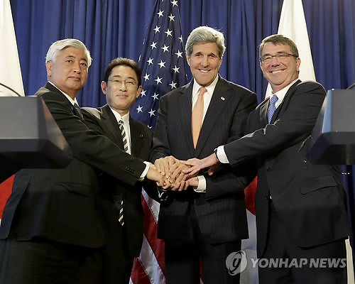 | △ 미일 양국은 지난달 새 미·일 방위협력지침(가이드라인)을 확정했다.(AP=연합뉴스 자료사진) |