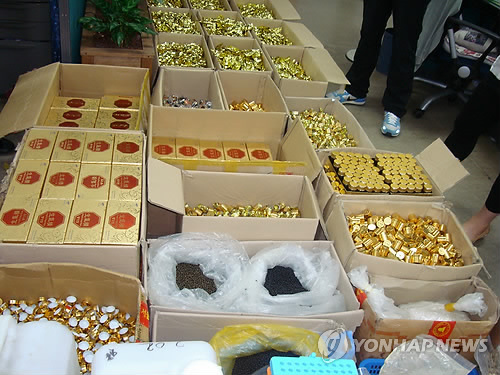 | △ 인터넷상에서 판매하다 적발된 가짜 정력제. 이들 가짜 정력제는 발기부전치료제 성분인 '타다라필(시알리스 성분)', '실데나필(비아그라 성분)'을 중국에서 사들여 만든 것이다.(연합뉴스 자료사진) |