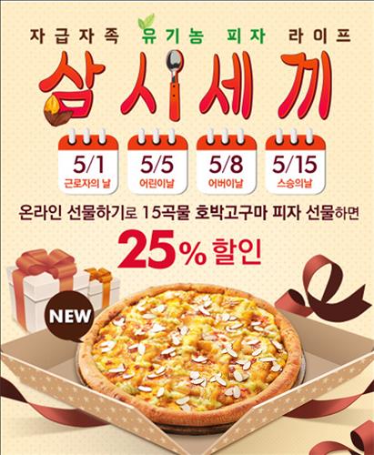 (서울=연합뉴스) 신호경 기자 = 피자 전문업체 도미노피자(www.dominos.co.kr)는 8일(어버이날)과 15일(스승의 날) 선물용 호박고구마피자를 25% 할인 판매한다.