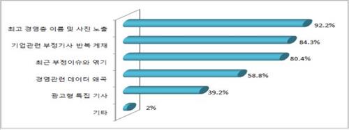 경영과 관련한 데이터를 왜곡하거나 광고형 특집기사를 싣는 방식도 58.8%, 39.2%로 나타났다.