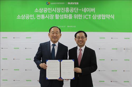 (서울=연합뉴스) 윤보람 기자 = 네이버는 소상공인시장진흥공단과 전통시장 활성화를 위한 정보통신기술(ICT) 교육 지원 업무협약을 체결했다고 8일 밝혔다.